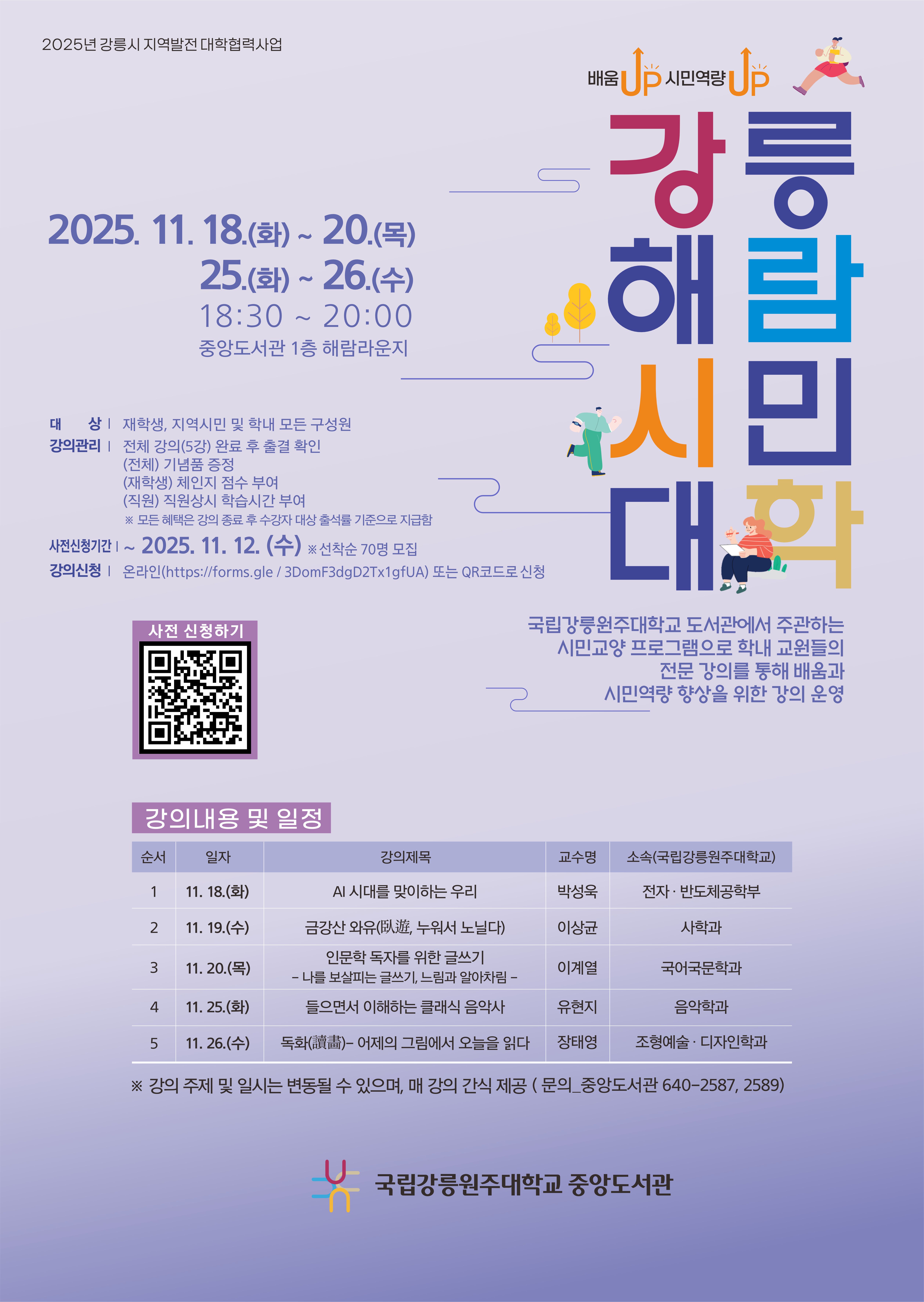 [강릉] [도서관][강릉시 지역발전 대학협력사업] 2025년 강릉해람시민대학 사전신청 안내