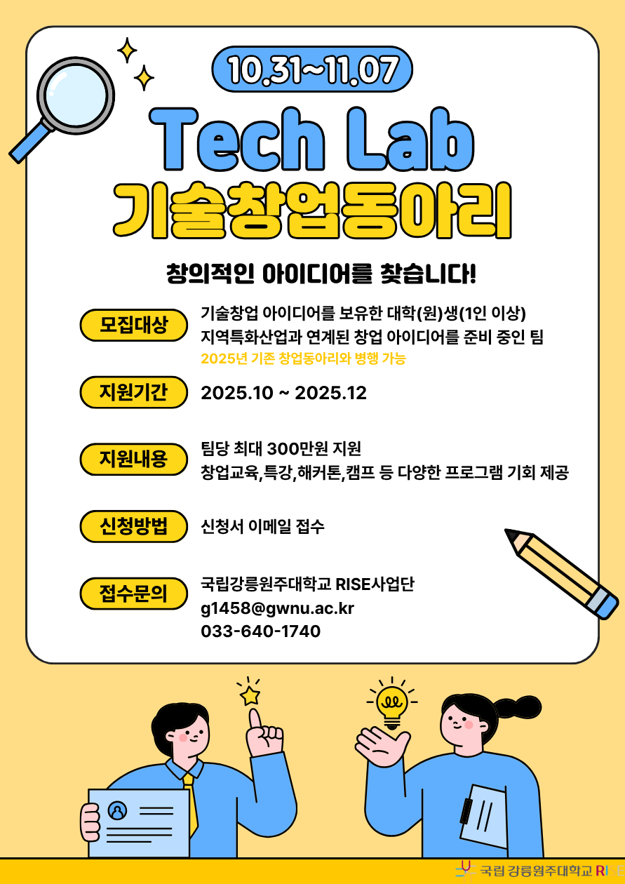 [RISE사업] 2025년도 기술창업동아리(Tech Lab) 추가모집 안내