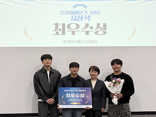 창업지원본부(본부장 이원상)는 지난 10월 31일 ‘로컬히어로즈100(Local Heroes 100)’ 학생창업 프로젝트 프로그램에서 우리 대학 ‘프로젝트_D(경영학과 윤태준, 컴퓨터공학과 이광희, 전자반도체공학부 이영제)’팀이 최우수상을 수상했다고 밝혔다.