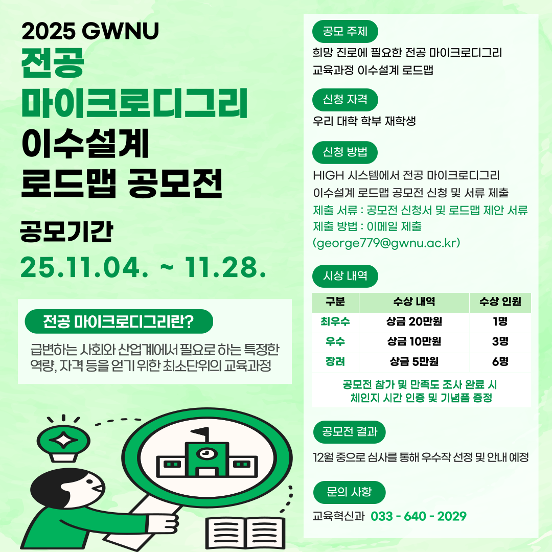 2025 GWNU 전공 마이크로디그리 교육과정 이수설계 로드맵 공모전 안내